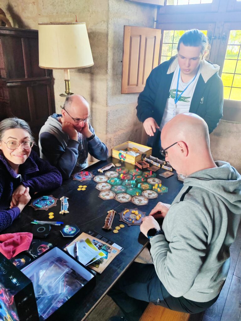Le Château en jeux, c’est bien sûr l’animation de tables de jeux et d’activités ludiques, mais aussi un accueil des visiteurs, une aide sur la buvette et la restauration, l’organisation et la communication du festival, …